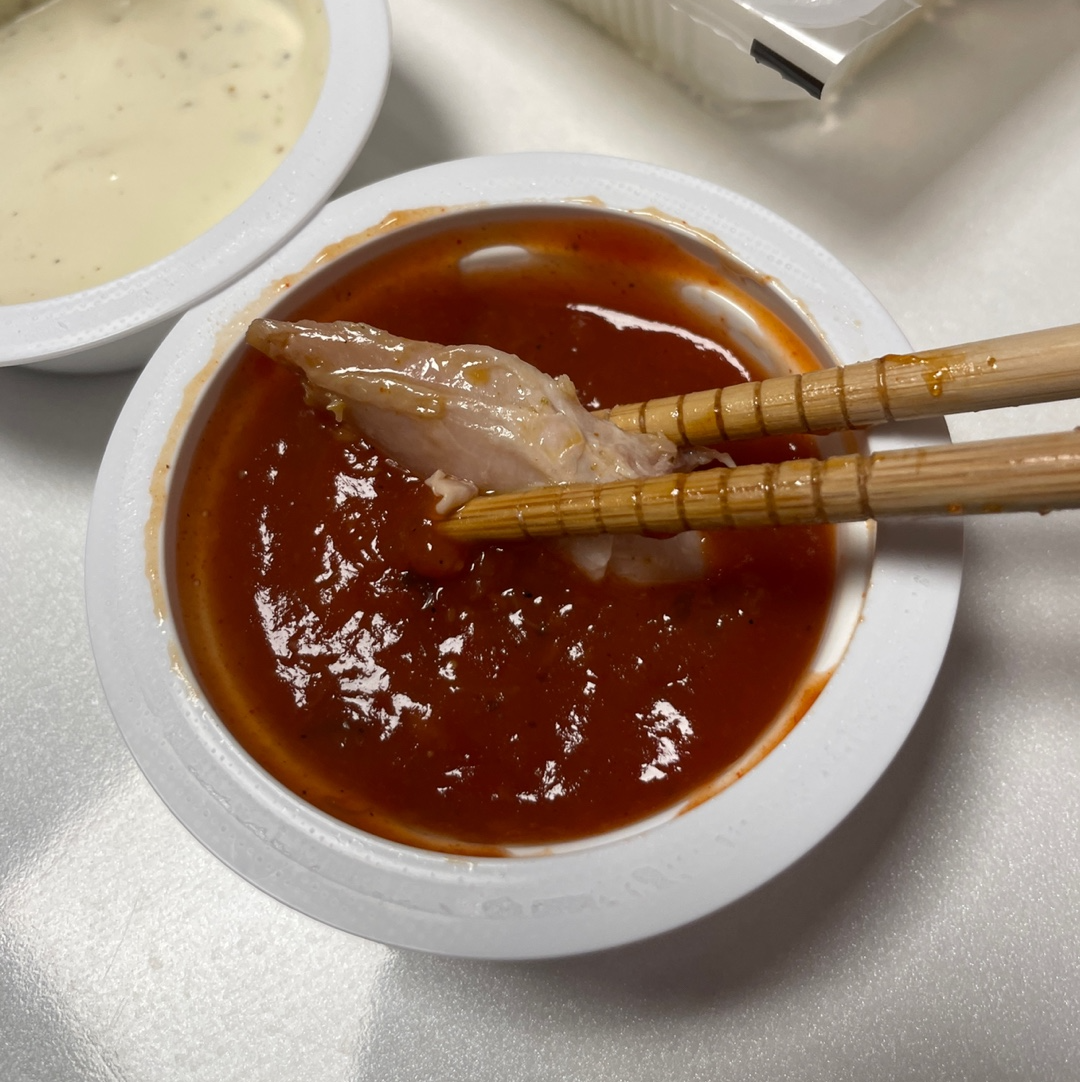 젓가락으로 집어 보니, 닭다리 크기가 정말 실했어요!